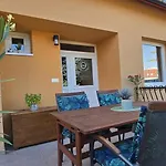Tijdens een verblijf in Szolo Apartman Villány kunnen gasten zich ontspannen op een terras binnen 10 minuten lopen van POlGAR Pince kft Polgar Panzio.